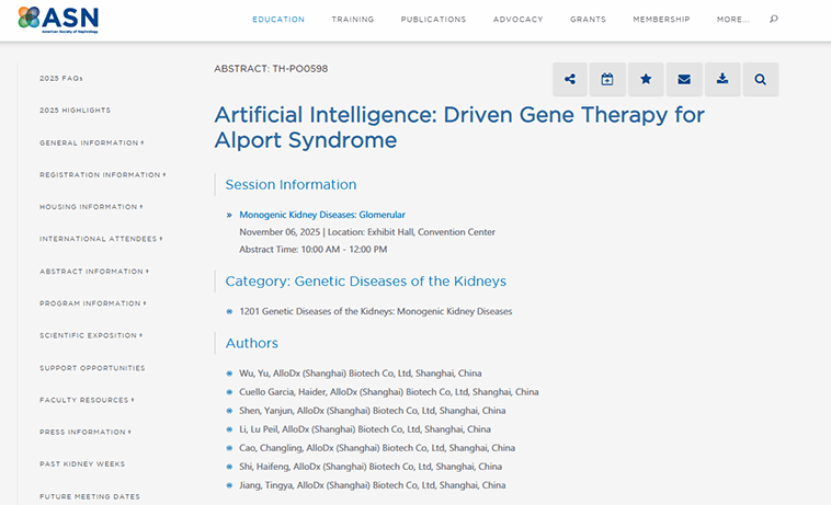 近日,全球肾脏病学领域最具影响力的学术盛会——ASN肾脏周(Kidney Week 2025)在美国休斯顿圆满落幕。作为引领全球肾脏病研究与临床实践的风向标,本届大会汇集了世界顶尖专家学者与前沿科技成果。本中心合作单位奥根诊断,继2024年甲基化与SRNS相关研究成果后,携两项前沿研究成果再度闪耀这一国际学术舞台。